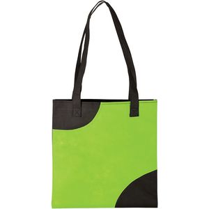 Made from recyclable 80 gsm Non Woven material, this bag features a black cut away design on the upper and lower edges which offer a striking pattern that will be seen and get noticed.
